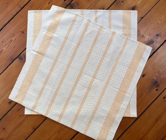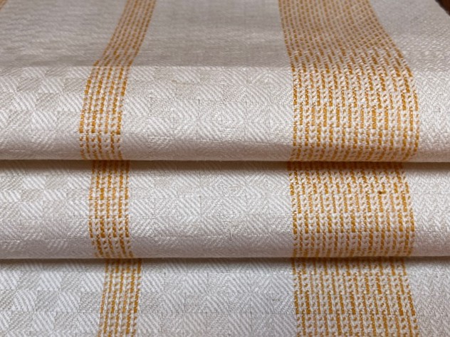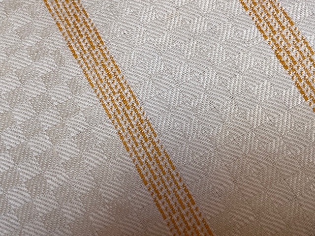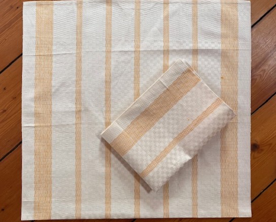 Geschirrtuch, Gläsertuch aus hellem Halbleinen mit schönem Würfel-Webmuster und gelben Streifen.