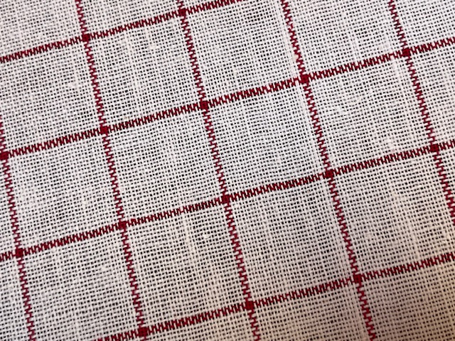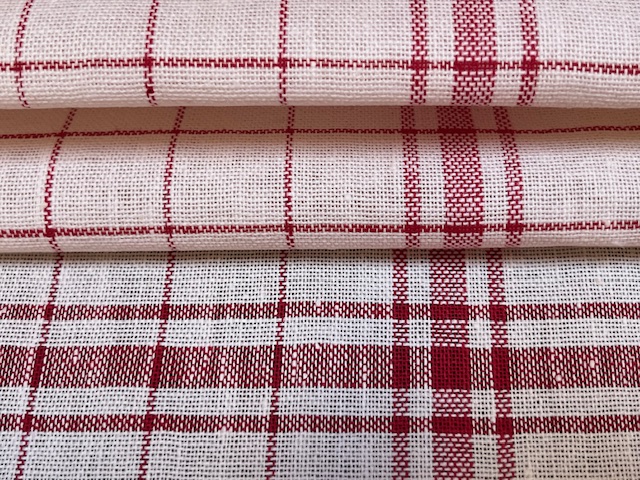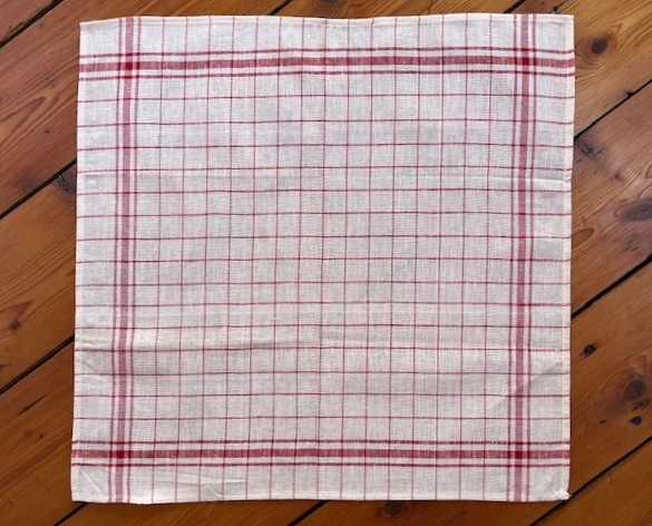 Quadratisches Geschirrtuch, Gläsertuch aus Halbleinen mit roten Streifen.