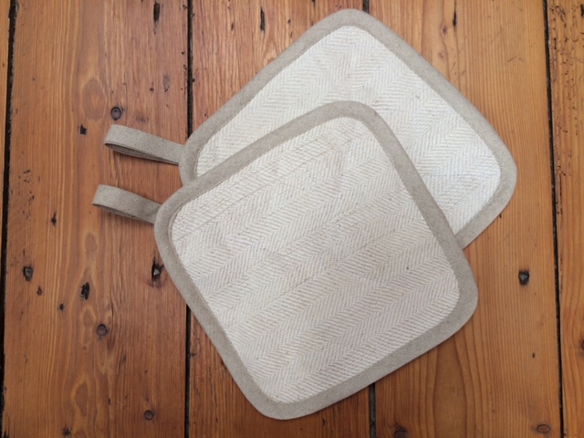 Topflappen. Festes Leinen mit schönem Webmuster.